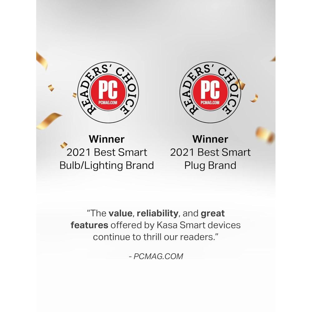 Trusted and Reliable: Designed and developed in Silicon Valley, Kasa is trusted by over 5 Million users and being the Reader’s Choice of PCMag 2020. UL certified for safety use. 2-year warranty.